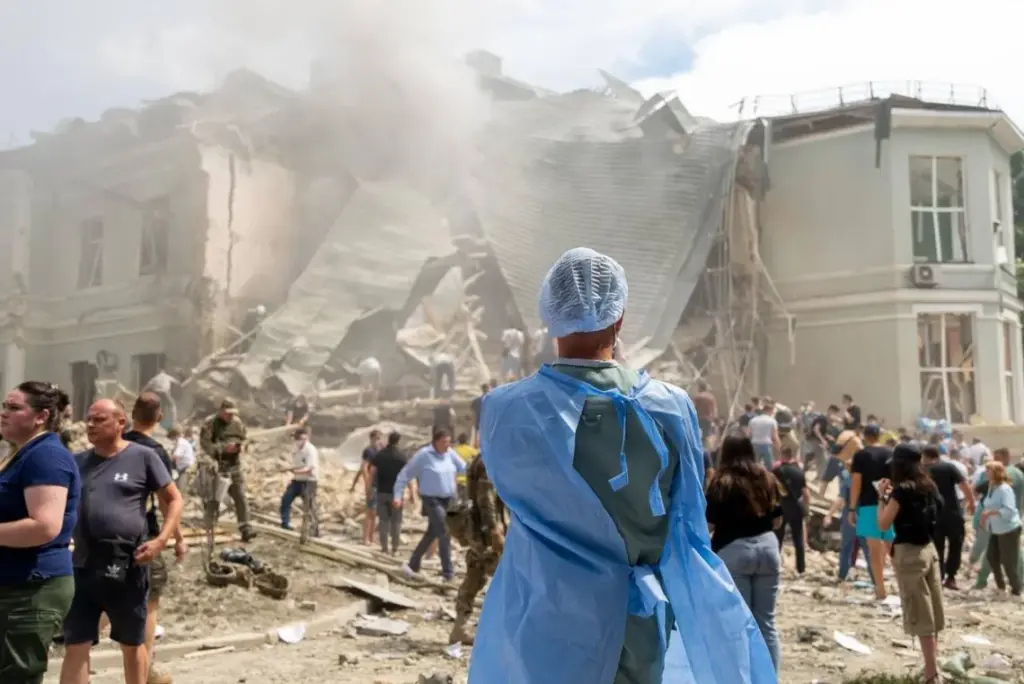 The destroyed “Ohmatdyt” hospital building / Photo: Kyiv City Military Administration