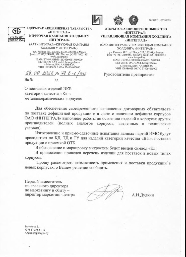 Among Belarusian electronics manufacturers, “Integral” JSC in Minsk stands out as the most powerful supplier of components to many Russian military factories.