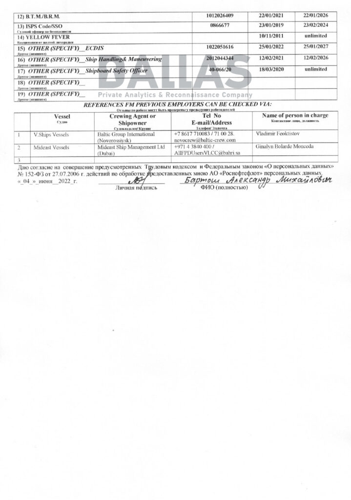Капітани чудово розуміють, чого очікують крюїнгові компанії, і вміють правильно себе позиціонувати. Візьмімо, до прикладу, вже згаданого Олександра Бартоша – він акцентує на своєму досвіді у проведенні операцій типу ship-to-ship (STS), які є ключовим інструментом тіньового флоту для обходу міжнародних санкцій на російську нафту. Такі маневри дозволяють приховати походження, пункт призначення та фактичного власника вантажу – й забезпечують продовження нелегальної торгівлі попри ембарго та цінові обмеження.